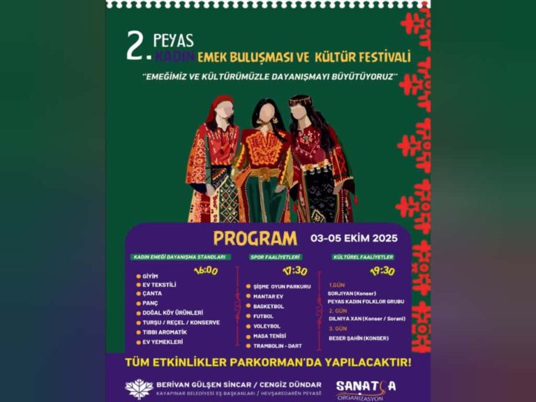 VENG HABER – Kayapınar Belediyesi, 3-5 Ekim’de 2. Peyas Kadın Emek Buluşması ve Kültür Festivali düzenleyecek.